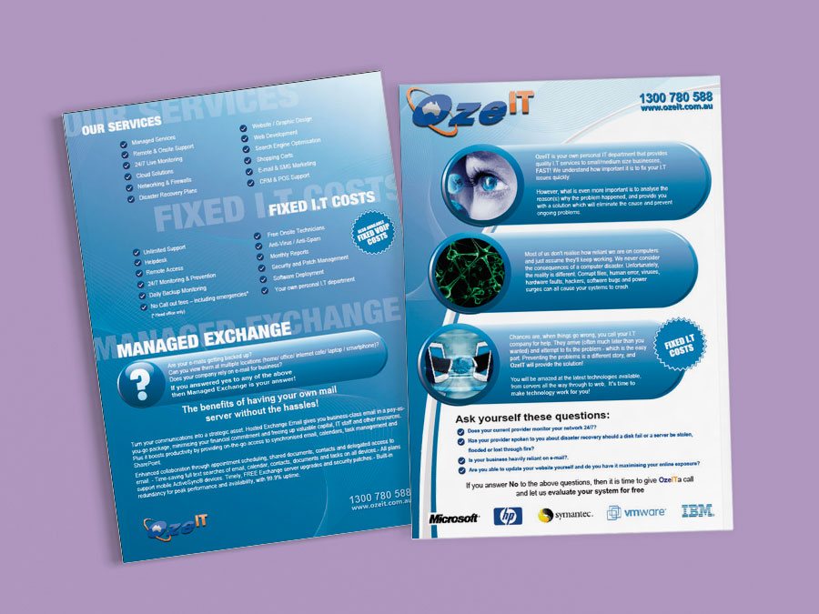 Diseño de brochure, frente y reverso de la Empresa Australiana de tecnología digital OzeIT